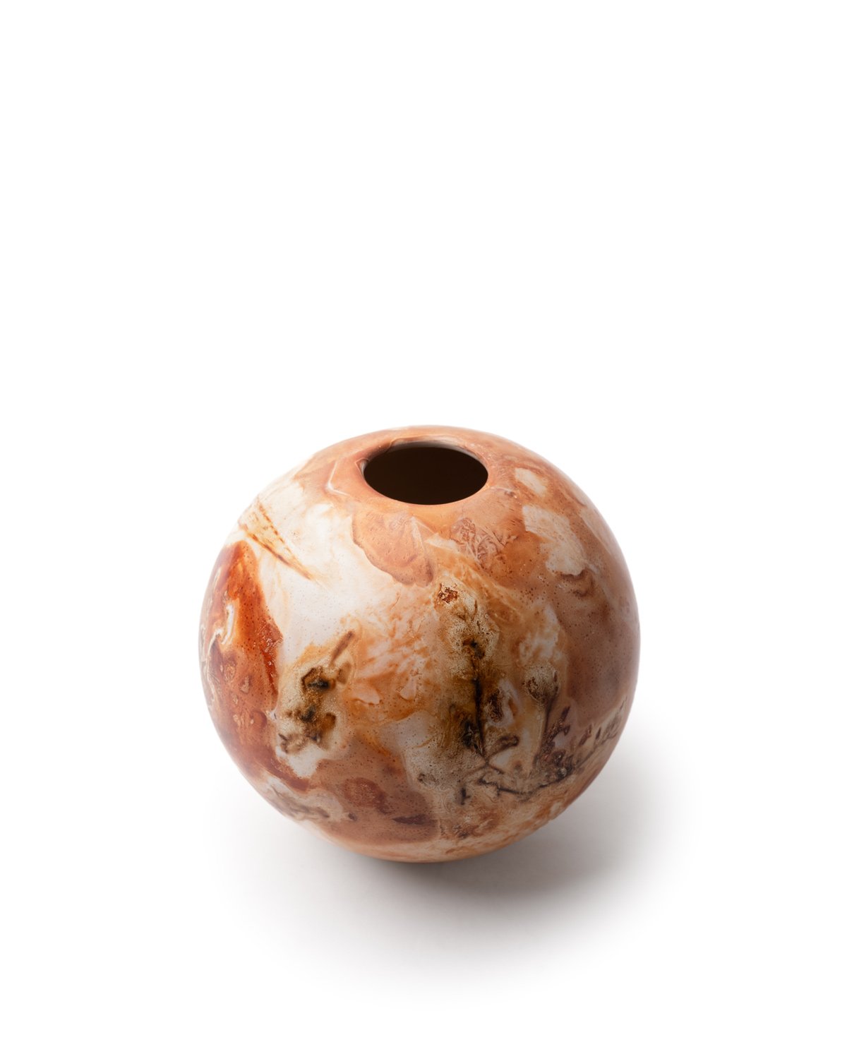 Born from a desire to connect the Earth’s most primal elements with the eternal beauty of the Cosmos, each vessel becomes a “miniature planet” shaped after celestial bodies. They embody the pure curves of nature and life itself – spherical forms that have long stood as timeless symbols of wholeness, continuity, and connection, echoing the cyclical rhythms of beginnings and endings repeated across the ages.